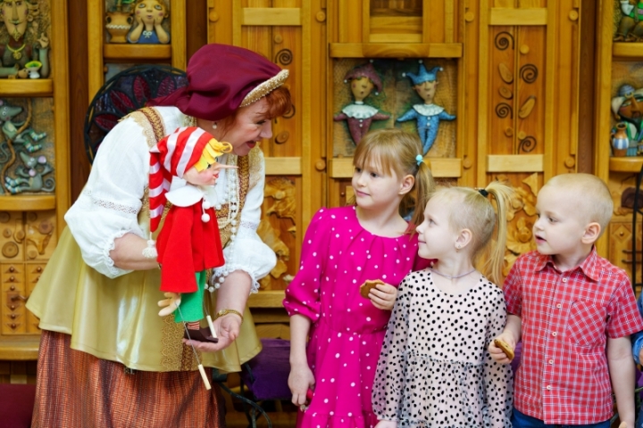 Кроме «Экскурсии по театру кукол», в нашем репертуаре появилась и детская экскурсия — «Терем сказок», это авторская экскурсия заслуженной артистки России Людмилы Щелкачевой.