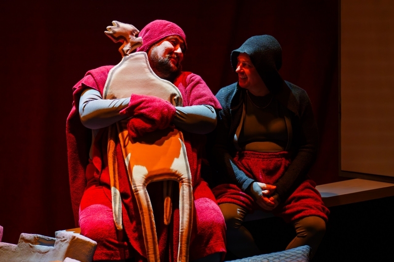 Петербургский режиссёр Наташа Слащёва и художник Виктор Клочко уже создавали в НОТЕКе спектакли с причудливо-парадоксальной простотой визуального языка — у всех на памяти тарно-мебельный, дощатый мир спектакля «Про Ёжика и Медвежонка» и почти лавкрафтовская кляксография спектакля «Муму». В общем, язык Слащёвой — это мир кукол, которые как бы и не совсем куклы в обычном понимании.