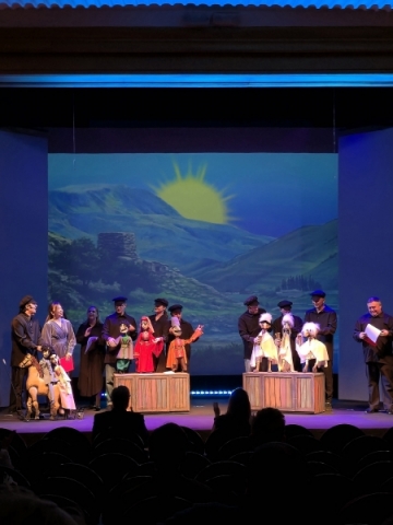 После поздравлений состоялся небольшой концерт — творческие номера от наших замечательных артистов. Песни Александра Зацепина прозвучали в кукольном исполнении, когда медведи буквально трутся о земную ось, а зайцы «косят трын-траву на поляне». И большой хор кукол из спектакля «Ханума» исполнил добрую песню с пожеланиями любви, добра и благополучия всем.